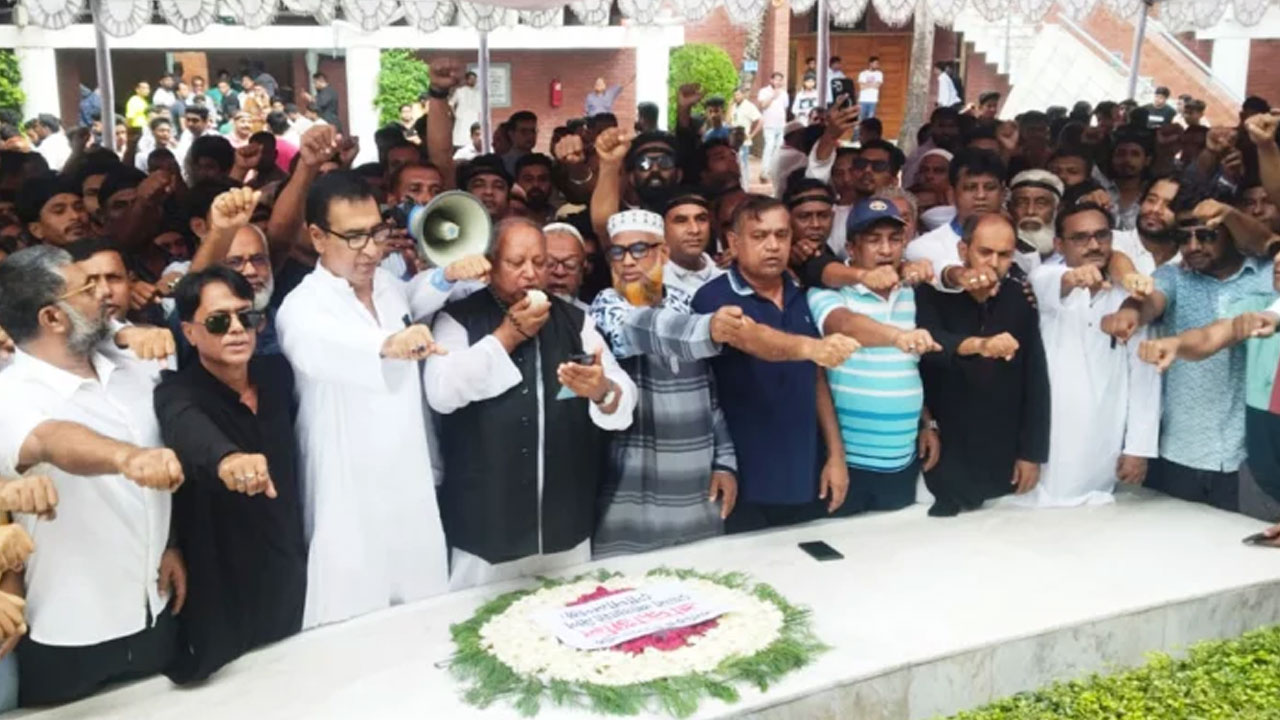বুধবার (৭ আগস্ট) দুপুরে জেলা আওয়ামী লীগের সভাপতি মাহাবুব আলী খান ও সাধারণ সম্পাদক জিএম শাহাবুদ্দিন আজমের নেতৃত্বে জেলা ছাত্রলীগ ও যুবলীগের প্রায় তিন শতাধিক নেতাকর্মীকে সঙ্গে নিয়ে বঙ্গবন্ধুর সমাধিতে শ্রদ্ধা নিবেদন করেন। পরে সকলে হাত তুলে শপথ নেন। এ সময় শপথ বাক্য পাঠ করান জেলা আওয়ামী লীগের সভাপতি মাহাবুব আলী খান।